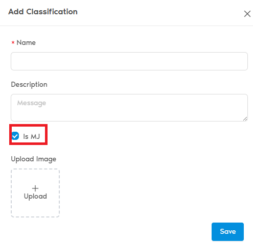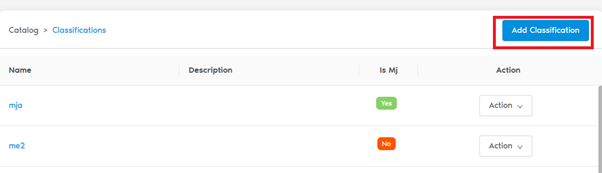 A Classification is a high-level grouping system—such as MJ (Marijuana) and Non-MJ—used to organize product categories.