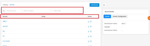 - Search by Brand Name, Category, Tags