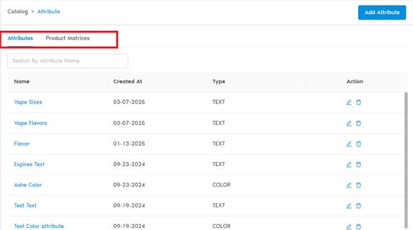 - Product Matrices: Where you create Templates by combining multiple Attributes.