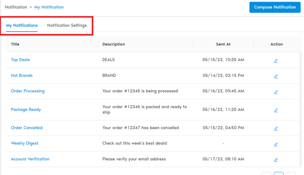 Here you can compose and schedule custom notifications that get pushed to both platforms.